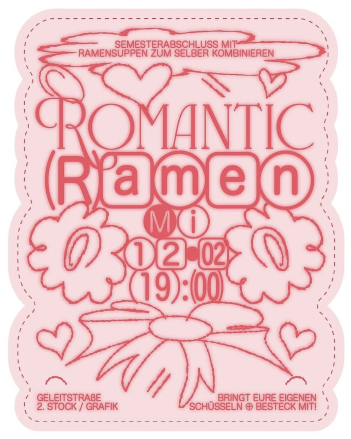 Flowers, Hearts, Illustration, Ramen |